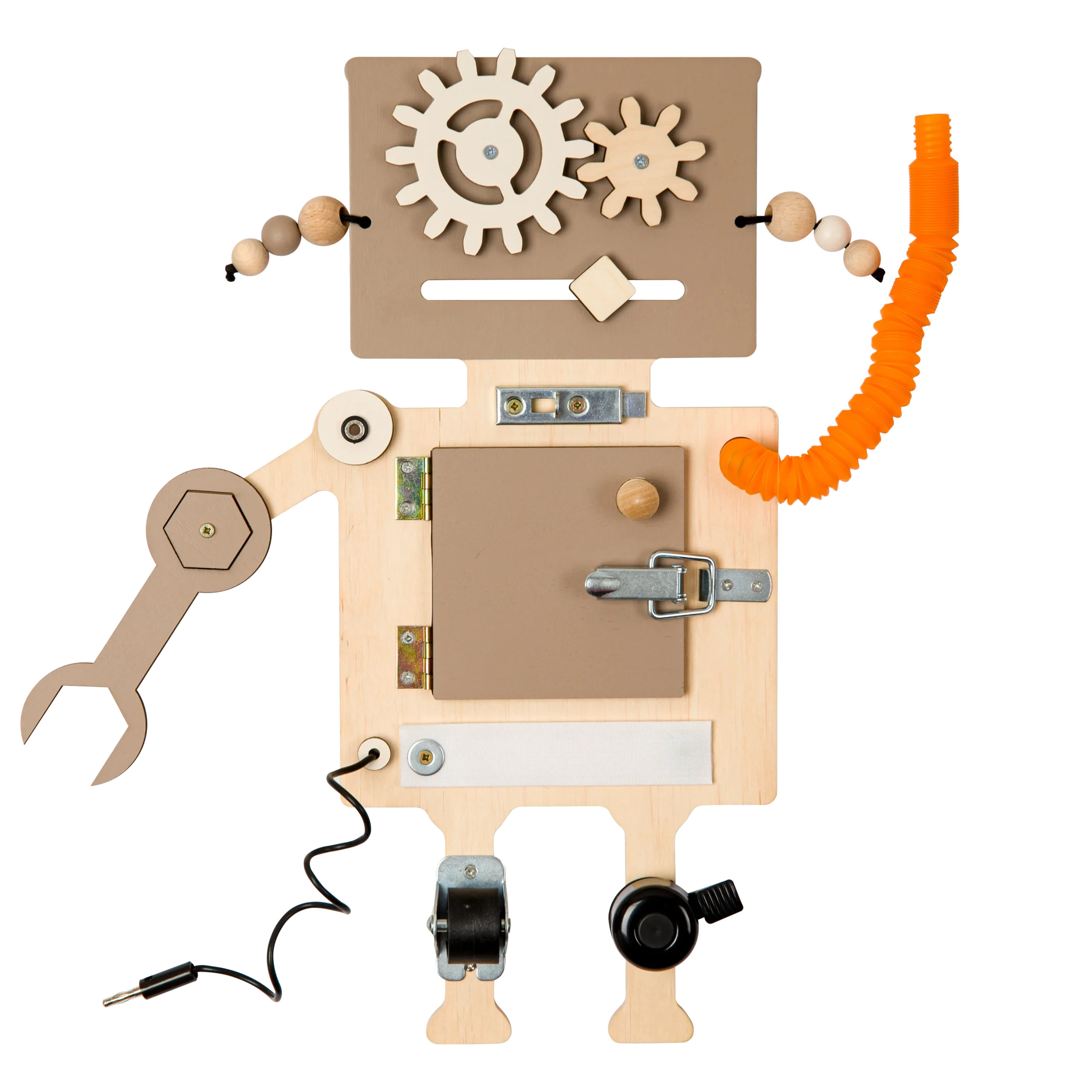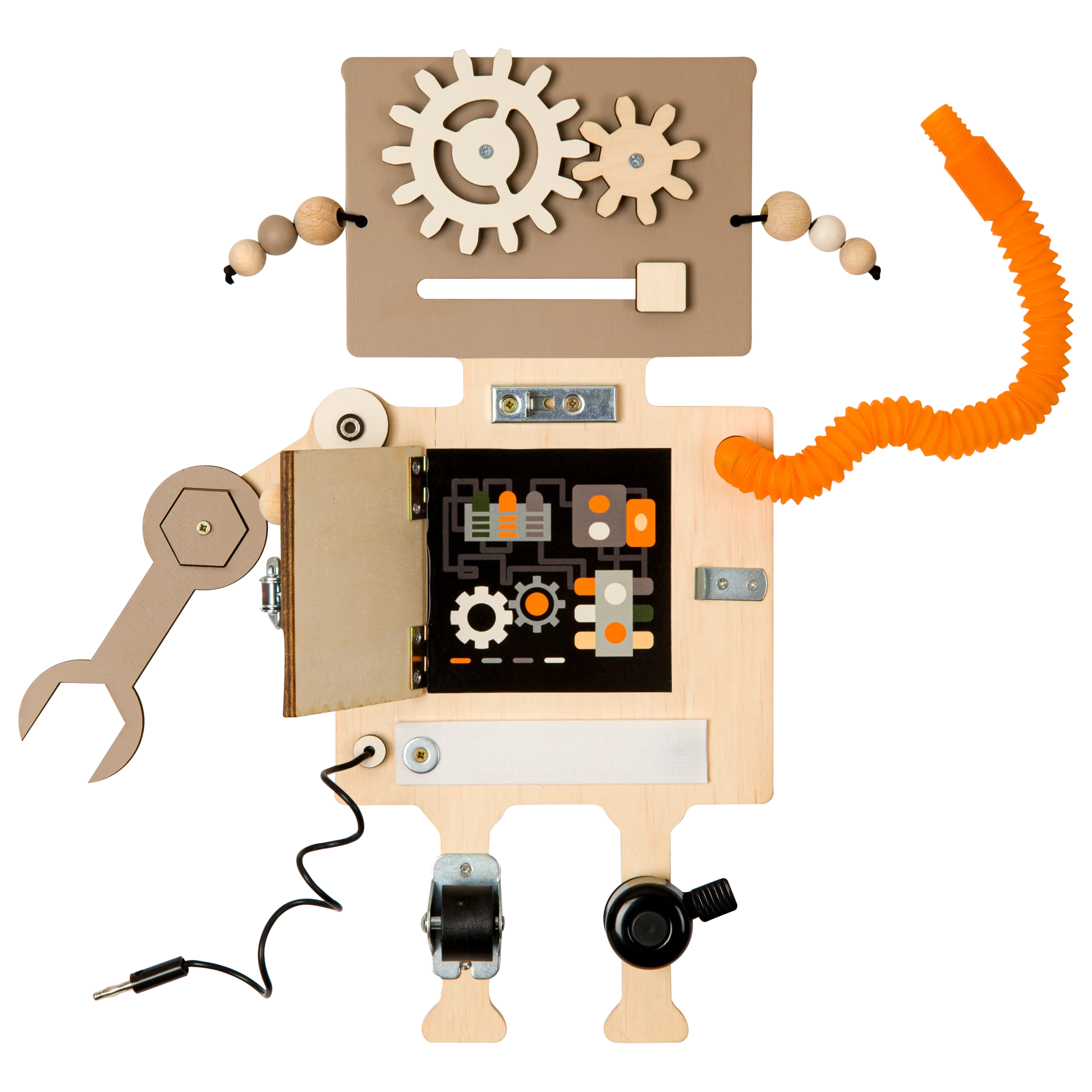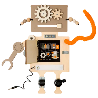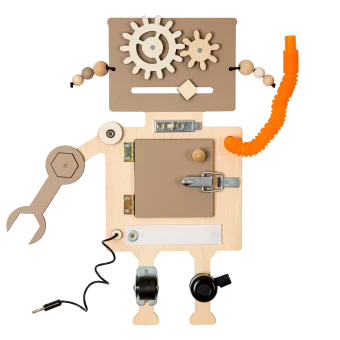The Robo Acticity Board is not just another toy that your child will get bored of after a few minutes of play. On the contrary! It will engage them for loooong hours, giving you a moment of peace and relaxation! All the elements of our most compact whiteboard support the child’s development and teach patience in exploring the world. It is a timeless educational toy that will work at various stages of toddler’s development. Little explorers return to it after a month or a year and get to know the individual elements anew