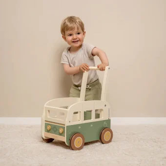 Your little one will love to go on an adventure throughout the living room with this Little Dutch Vintage walker wagon. Step by step they can learn how to walk as they push the wagon to help them get there, while encouraging their balance, coordination and motor skills.