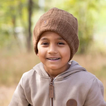 Bruse Húfa Merino ull – Brún m/dýramunstri